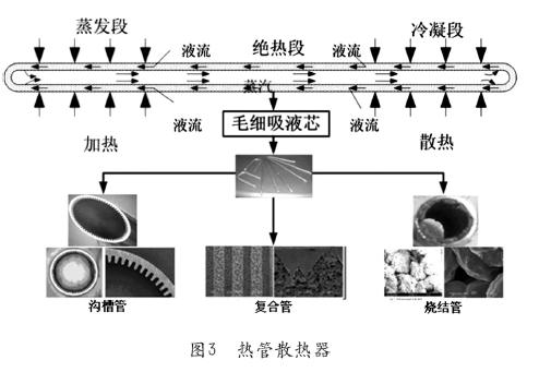 热管散热器对比常规的风冷散热片有所改变,在最贴近CPU部分使用高效的热管替代常规金属基座。热管是通过封闭的金属腔体和毛细吸热芯,充分利用了换热工质在热端蒸发后,在冷端冷凝相变(即利用液体的蒸发潜热和凝结潜热)和热传导原理,使热量快速传导透过热管将发热物体的热量迅速传递到热源外,其导热能力高于同等质量金属达到数量级的级别,而且平板型热管的热温度场均匀,局部换热量大,成为更佳的散热解决方案,当然成本有所增加。