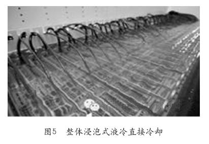 直接冷却是采用密闭的氟化液等矿物质直接浸泡冷却IT设备的芯片、内存等发热部件,形成密封的一级散热循环系统,而二级循环系统可以采用自然风冷或者冷却水系统进行冷却。对比间接制冷系统,直接冷却对发热元器件冷却的均匀度更好,冷却液温度可以更高,尤其是选择一定温度下相变的液体,局部散热能力强,散热效果更好;比如对于60℃的芯片,可以采用50℃冷却水或冷却蒸发温度在55~60℃的冷媒流体,因此,即使夏季45℃高温天气,也可以实现直接新风冷却或者冷却塔,从而数据中心实现全年自然冷却,降低能耗,这对于全球温带和热带区域实现制冷系统的高效带来了突破,是有竞争力的制冷方案。整体浸泡式液冷直接冷却如图5所示。