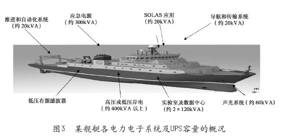 背景情况:党的十七届五中全会把发展海洋经济提到了国家战略的高度,明确提出了提高海洋开发、控制、综合管理能力。而海洋工程装备是开发利用海洋资源的物质和技术基础,关系着国家的能源战略安全。2011年9月16日,国家发改委、科技部、工信部和能源局印发了《海洋工程装备产业创新发展战略(2011-2020)》,提出要综合运用税收优惠和优化金融服务支持海工企业发展。全球海工行业市场规模350亿~450亿美元。预计未来5年年均市场规模约40亿~50亿美元。图3为某舰艇各电力电子系统及UPS容量的概况。