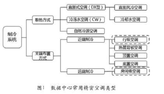 在目前的丝瓜视频污染APP主流应用中,从末端布置方式而言,主要有近端制冷的行级空调和远端制冷的房间级空调两种;从散热方式而言,分直膨式散热和冷冻水散热两种方式,数据中心常用制冷系统如图1所示。