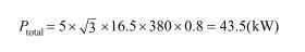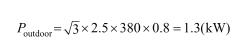 例如,假设在T1工况(温带气候,环境温度在-20~45℃),对于散热量为38kW风冷室外机,其输入制式为380~415Vac/3Ph/50或60Hz,满载电流为2.5A,功率因数取0.8,则室外机功率为
