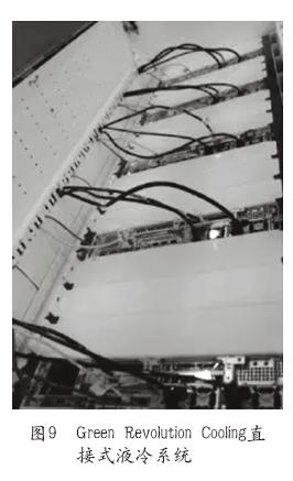 Green Revolution Cooling推出的直接式液冷系统是把服务器浸没在一种矿物油中进行降温,浸没其中的戴尔R730机架服务器的CPU温度为30℃左右。Green Revolution Cooling直接式液冷系统如图9所示。