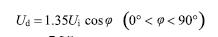 根据式(1),当UPS要求输出线电压为380V时,直流母线电压Ud必须大于620V。工频机采用三相桥式整流时,直流母线电压Ud与输入交流电压Ui的关系为