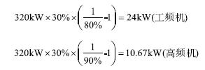对于本例,假设负载率为30%时,工频机的效率约为80%,而高频机可以达到90%。根据式(11),两者的损耗分别为