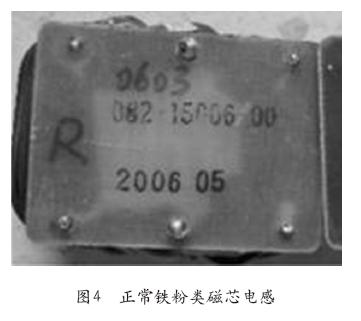 ②一般生产厂商由于成本原因,电感磁芯往往选用铁粉类的磁芯。铁粉类的磁芯有一个致命缺陷,即老化问题。这类磁芯随着使用时间的推移,磁芯性能会逐渐下降,电感量会逐渐降低。当电感量降低到一定程度时,电感就会完全失效,导致机器故障。一般三年左右,铁粉类磁芯的电感的寿命就差不多了。当机器长时间带重载或工作环境温度比较高,电感老化问题会更严重。UPS铁粉类电感老化后的照片见图3。正常铁粉类磁芯电感见图4。