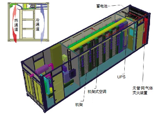 集装箱式数据中心,外壳采用符合业界海运要求的工业集装箱箱体,集成配电、监控、制冷、机柜、布线、消防、安防等所有基础设施子系统,经装饰后可以满足数据中心的性能及维护需求。内部所有的部件以标准的工厂预安装完成部署,快速完成生产。客户仅需提供场地、电力和网络即能获得完整的数据中心。