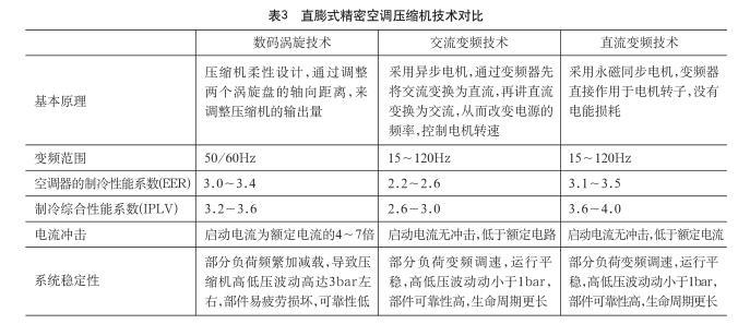 从性能和可靠性方面而言,采用直流变频技术的压缩机,其电机启动力矩大、效率高(损耗低,功率因数高)、精准调速、高功率体积比高、可靠性高、使用寿命长,技术已经比较成熟和稳定;相较之下,数码涡旋技术虽有长期市场应用经验,但调速范围窄,IPLV不如直流变频技术,无法完美匹配要求部分负载的高效的数据中心制冷。