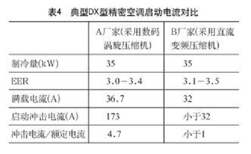因此,在考虑非变频压缩机风冷空调启动冲击电流时,可对不带加热加湿流功能的满载电流按5倍考虑即可满足要求,此时UPS需要满足的功率为