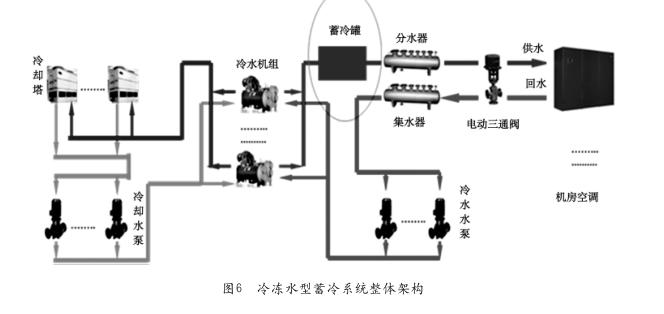 需要注意的是,在冷冻水型空调系统中,为实现蓄冷,一般需配置冷冻水泵,冷冻水泵的功率大小需根据安装位置、空间及承压,结合管路水流量及扬程来选取,这里不做过多讨论。但为实现持续制冷,至少需要对冷冻水泵采用UPS供电。