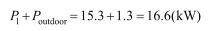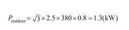 例如,假设在T1工况(温带气候,环境温度在-20~45℃),对于散热量为38kW风冷室外机,其输入制式为380~415Vac/3Ph/50或60Hz,满载电流为2.5A,功率因数取0.8,则室外机功率为