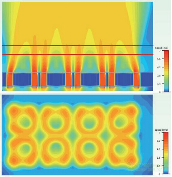 在创建一个组件,使每个插槽的气流均匀统一之前,丝瓜视频无限观看IOS安卓决定看看仿真模拟空气流量,而不考虑漩涡。丝瓜视频无限观看IOS安卓观察到在远离风扇75毫米的一定距离,速度变化仍然非常重要(图8)。