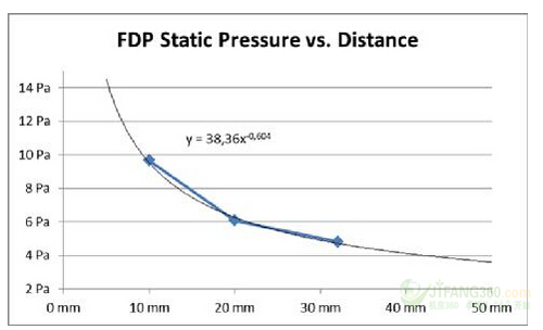图11:EMI屏蔽进气口的距离与风扇的进气气流分布:30毫米(0.2立方米/秒)。